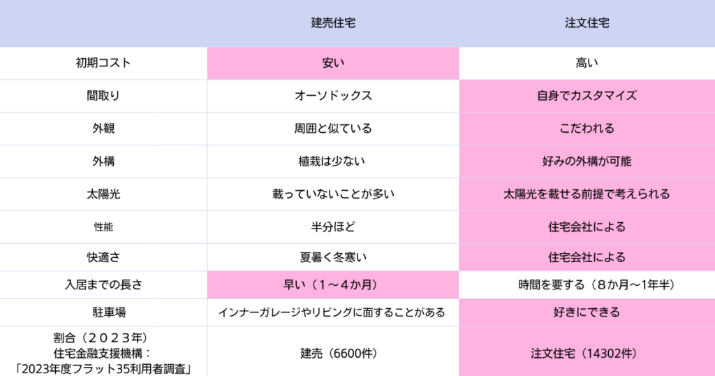 - 建売住宅・注文住宅の特徴