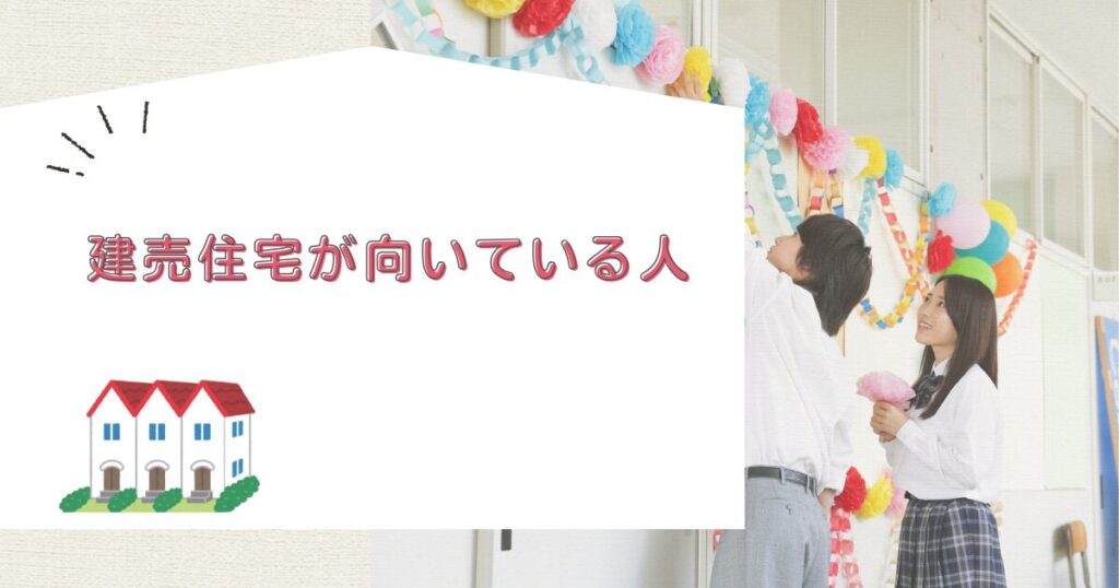 - 建売住宅が向いている人とは初期コストを抑えて早く入居したい方