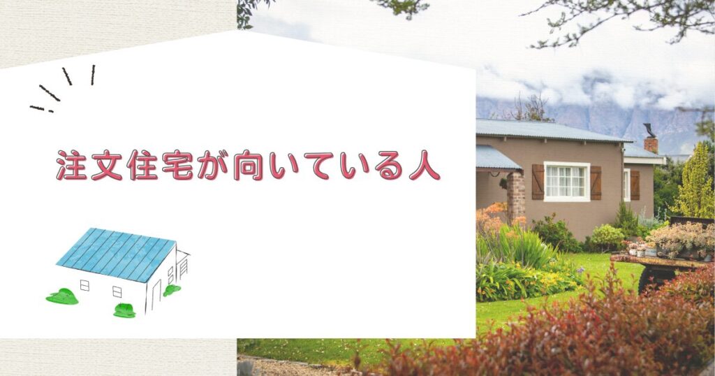 - 注文住宅が向いている人とは間取りや性能にこだわって家を建てたい方